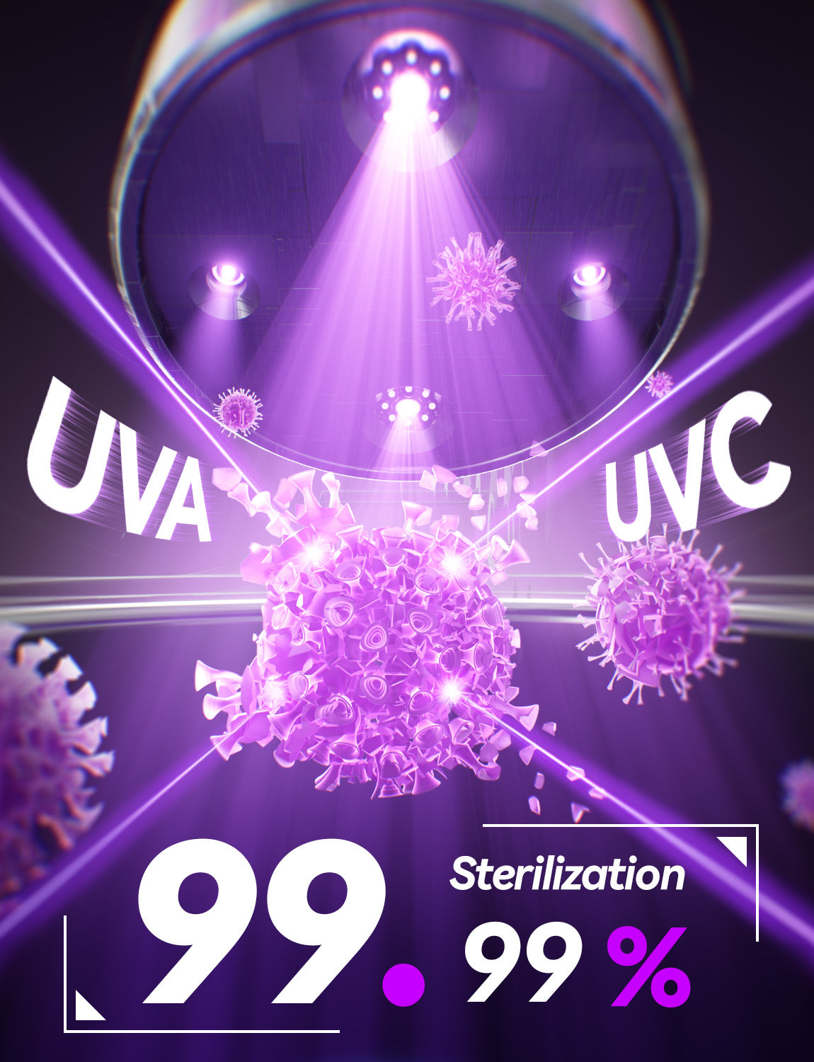 Deep Cleaning & Dual Sterilization: The retainer cleaner machine adopts 46KHz dual-turbine ultrasonic technology coupled with powered dual transformers, enabling efficient breakdown of stains for thorough cleaning of retainers and orthodontic appliances. Simultaneously, the retainer cleaner machine incorporates UVC+UVA dual-channel ultraviolet sterilization system, achieving a sterilization rate of up to 99.999% to ensure every item remains hygienically clean. |