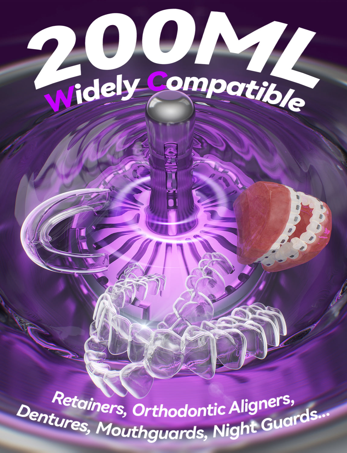 Designed specifically for oral health: This product is specifically designed for deep cleaning and disinfection of oral care appliances such as dental retainers, invisible aligners, and mouthguards through ultra sonic retainer cleaner machine technology. It has earned recognition from 645,000+ customers and recommendations from dental professionals. For optimal cleanliness, use with cleaning tablets (not included). |